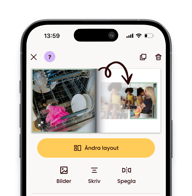 For at flytte et billede på et bestemt opslag, som er åbnet, dvs. i redigeringstilstand, skal du trykke og holde fingeren nede, indtil der vises en grøn ramme. Træk derefter billedet til det ønskede sted – slip – og de to billeder bytter plads. Så nemt er det!