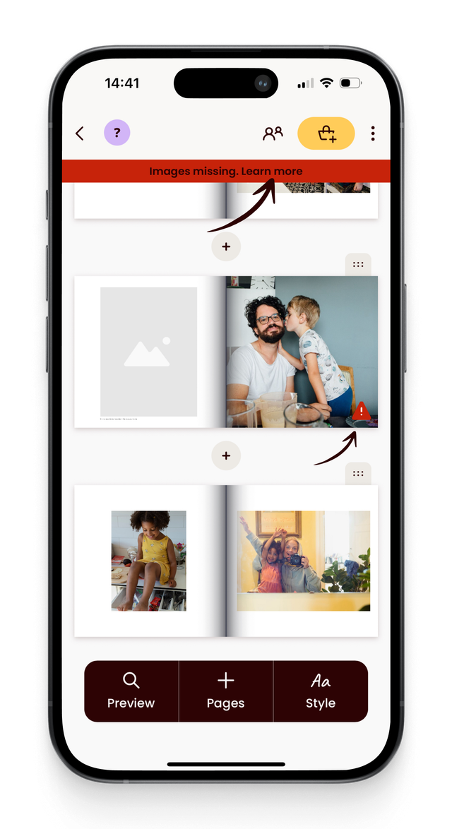 Udråbstegnet indikerer, at billedet ikke blev uploadet korrekt, eller at billedfilen er beskadiget.