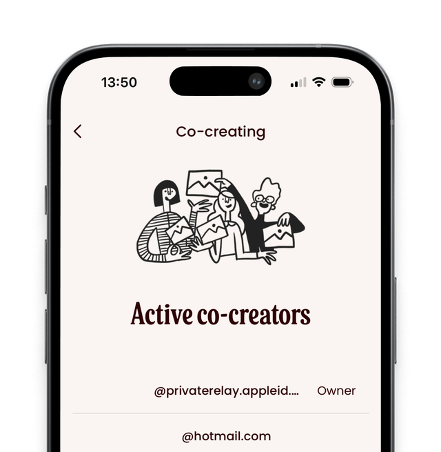 Quando sei nel fotolibro e premi sull'icona con due figure, puoi vedere quali amici hanno accettato l'invito a collaborare.