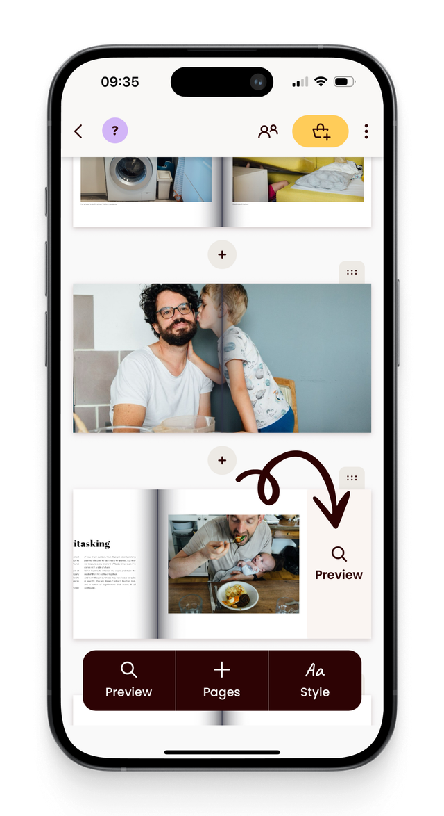 Ja. Swipe naar links over de spread en tik op preview.