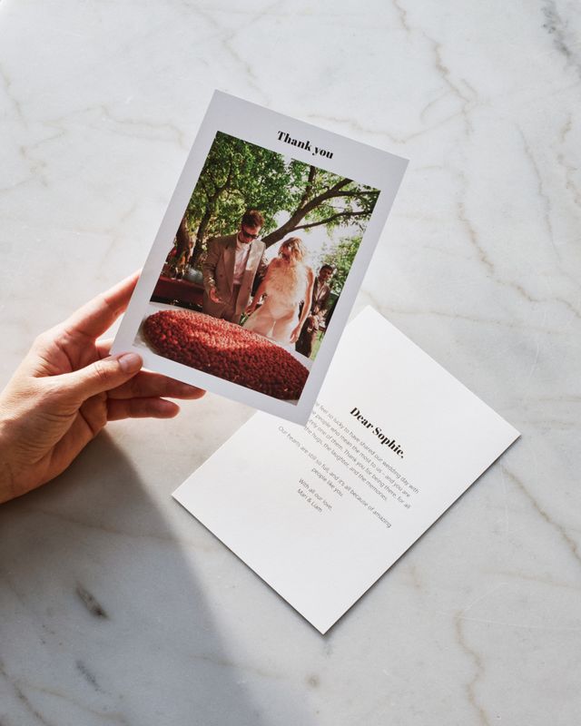 Er is ruimte voor één foto op de voorkant en tekst op de achterkant.
