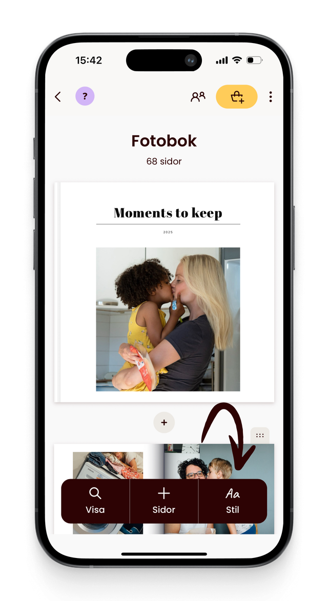 Trykk på Aa Stil for å bytte mellom fontene, så oppdateres omslaget og overskriftene i hele boka.