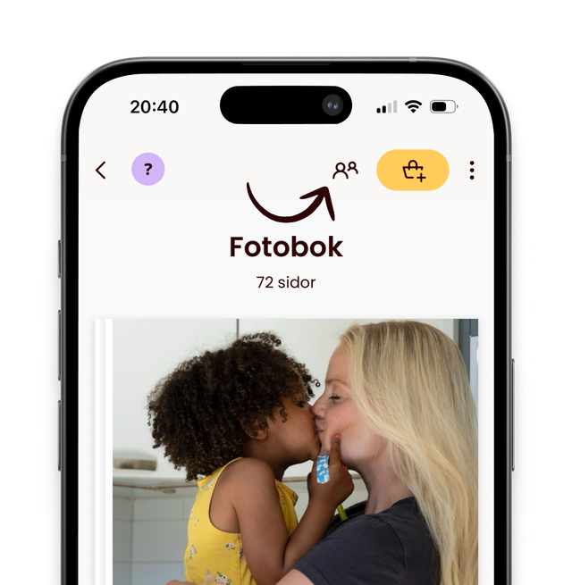 Begynn med å opprette boka som vanlig ved å lage et omslag med tittel og bilde. Deretter klikker du på ikonet med de to figurene og sender en invitasjon til vennene dine på den måten du ønsker (e-post, tekstmelding eller annen måte). Så snart vennene dine har takket ja til invitasjonen, kan dere begynne å samle felles minner! Invitasjonen kan brukes av opptil 100 venner.