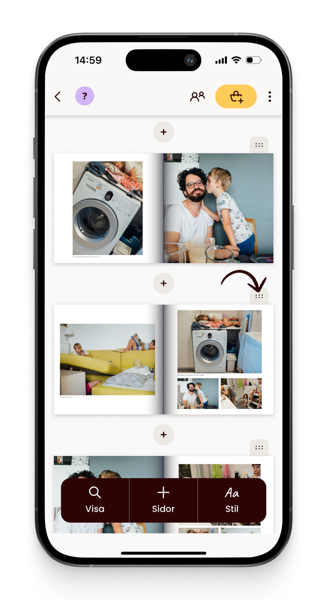 I appen er det bare å trykke og holde nede håndtaket øverst til høyre og deretter dra det opp eller ned dit du vil ha det.