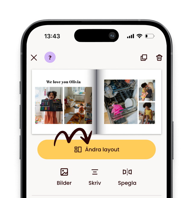 For å utforske de forhåndsdefinerte layout-alternativene kan du trykke på «Endre layout». Når du har funnet en layout du liker, kan du også bytte plass på bildene ved å dra og slippe dem. Du tar bare tak i bildet du vil flytte, og slipper det oppå et annet bilde. Da bytter de plass.